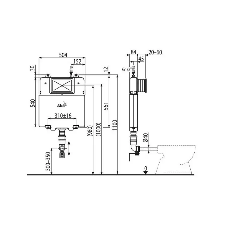 Бачок для унитаза Alcadrain Basicмodul для заливки в стену