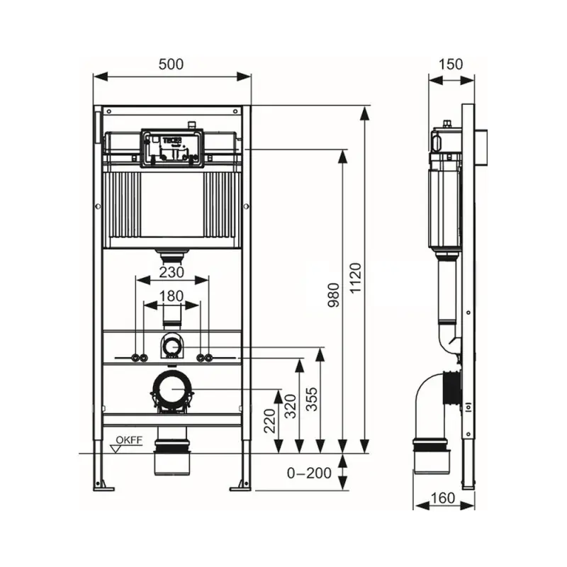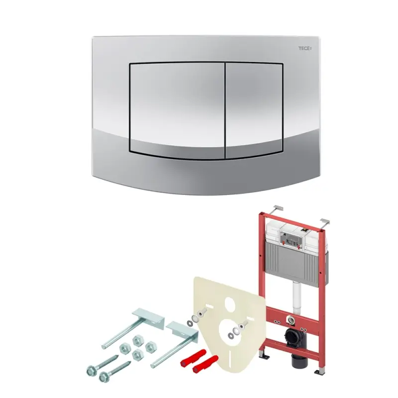 Инсталляция для унитаза TECEbase — это система, предназначенная для установки подвесного унитаза. Конструкция представляет собой прочную раму и бачок скрытого монтажа с общим объемом 10 литров. В комплекте клавиши смыва.