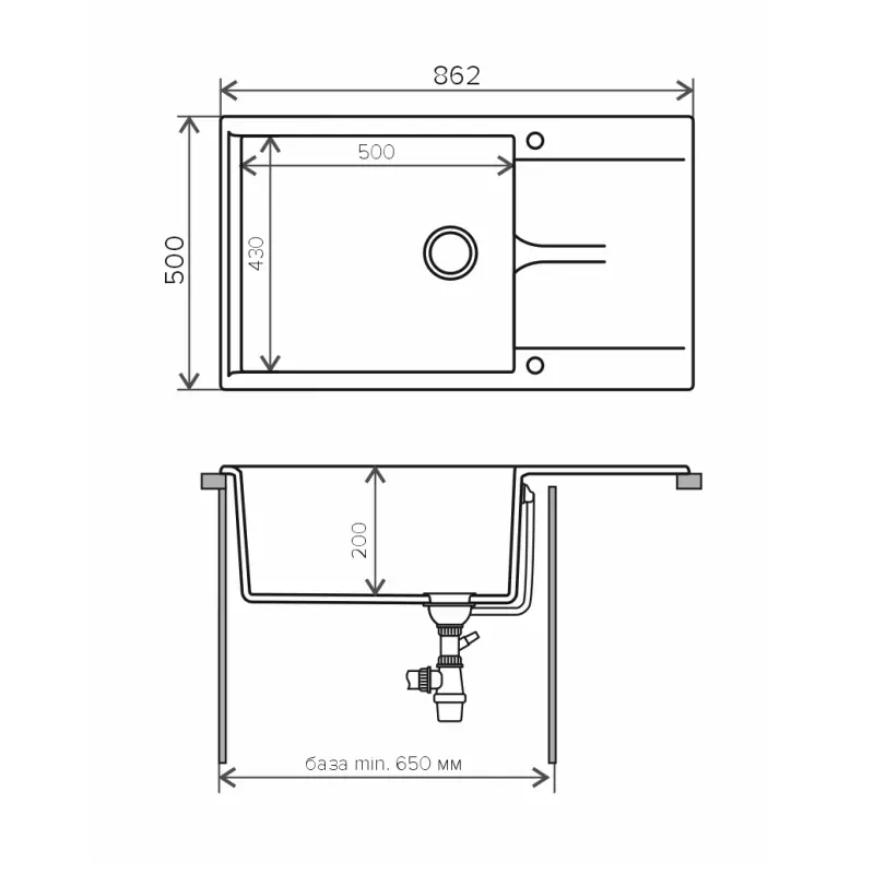 Мойка кухонная Polygran Gals имеет размеры 86,2х50 см., ширина чаши: 50 см. Прямоугольная форма. Цена указана за мойку со сливом-переливом.
