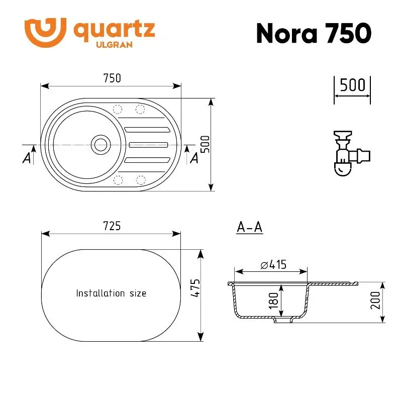 Мойка кухонная Ulgran Quartz Nora имеет размеры 75х50 см., ширина чаши: 41,5 см. Овальная форма. Цена указана за мойку и сифон. Кухонная мойка из кварцевого композита изготовленного на основе пигментированного кварцевого песка (80%) и акрилированных термоактивных полиэфирных смол (20%).