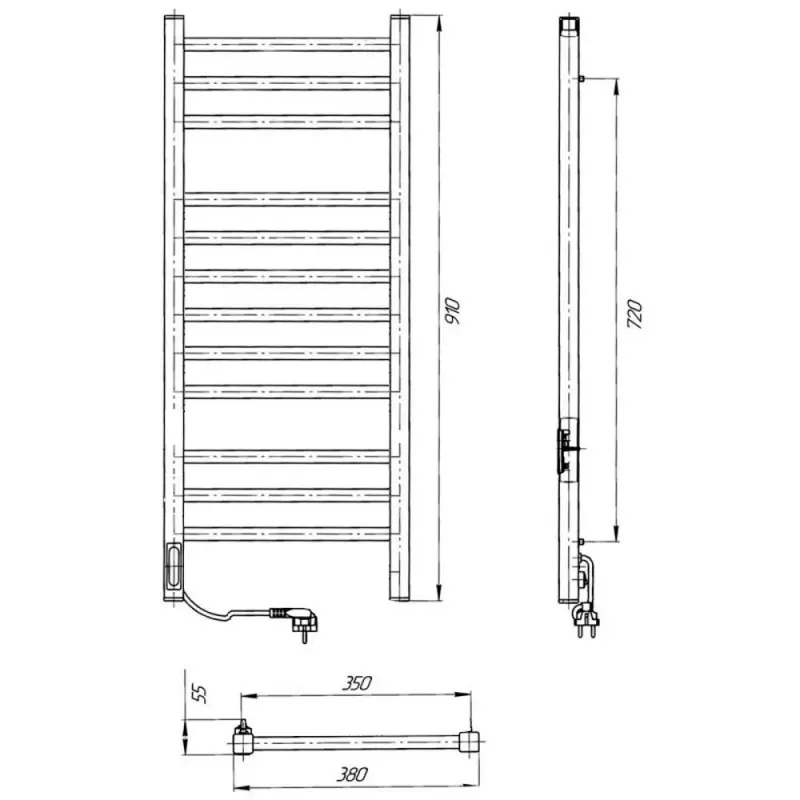 Полотенцесушитель электрический Laris Астор с высотой 90 см., используется для обогрева и сушки помещения. Нижнее подключение. Изготовлен из черной стали.