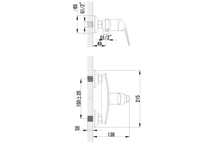 Смеситель для душа Lemark Plus Advance LM1203C изготовлен из качественной латуни и имеет защитное покрытие, что способствует устойчивости к коррозии и резким перепадам температуры. Управление рычажное, настенный монтаж на два отверстия.