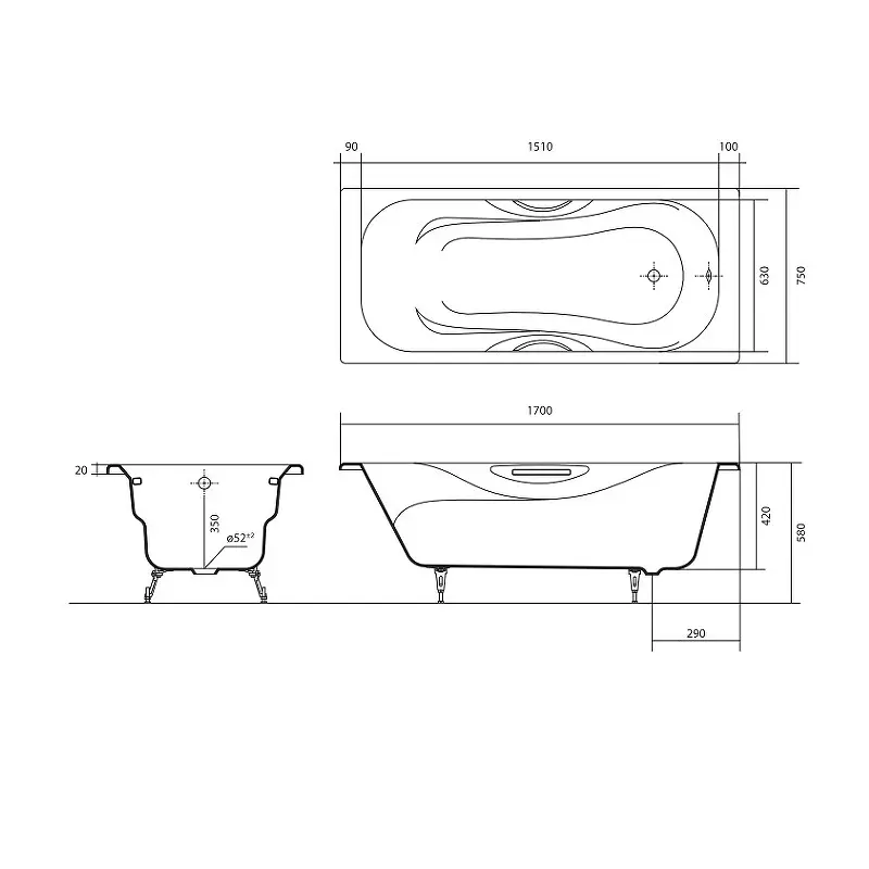 Ванна чугунная Aquatek из коллекции Гамма имеет размер 170х75 см. Форма прямоугольная. Установочный комплект, слив-перелив не входит в базовую комплектацию и приобретается отдельно. Дополнительно комплектуется смесителем, передней и(или) боковой панелью. Ванна идет с ножками и ручками.