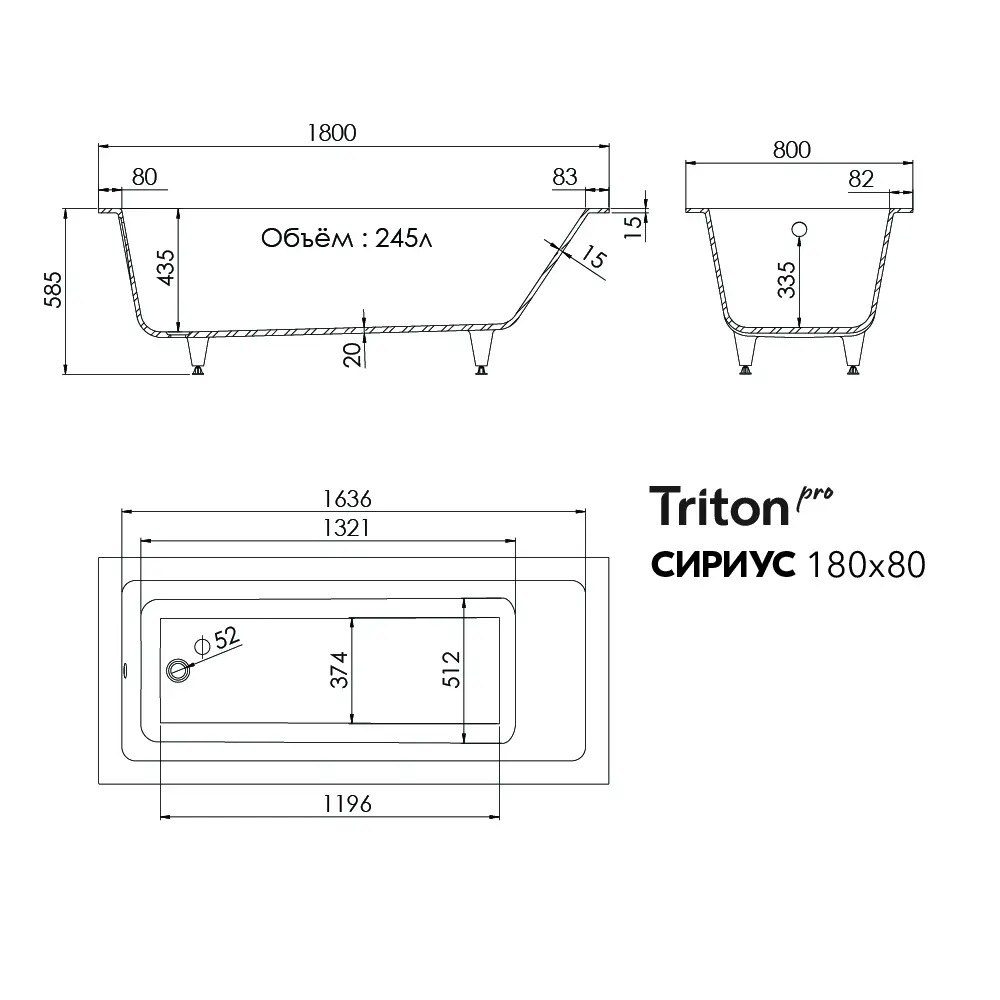Ванна из искусственного камня Triton Сириус имеет размер 180х80 мм. Прямоугольная форма. Дополнительно приобретается смеситель.