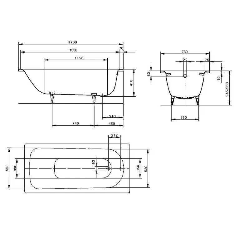 Ванна стальная Kaldewei Saniform Plus 371-1 170х73