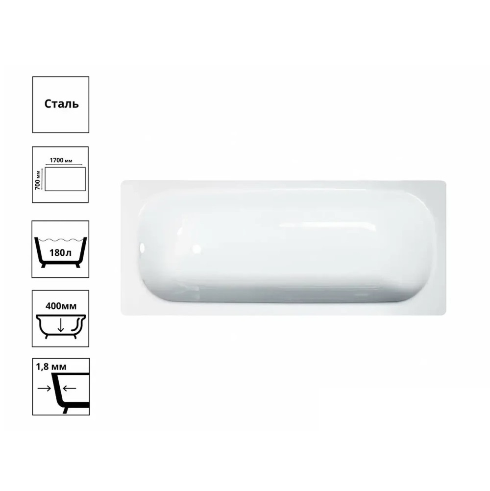 Будьте первым, кто оставил отзыв на “Ванна стальная Виз Tevro 170х70 с опорной подставкой Белый глянцевый T-72902”